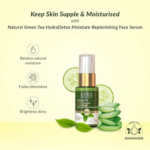Lotus Botanicals Natural Green Tea HydraDetox Moisture-Replenishing Face Serum | Boosts Glow and Skin Radiance | Provides Intense Hydration | Prevents Acne and Pimples | Fights Signs of Ageing | Tightens Pores | Reduces Inflammation | Preservative Free | For All Skin Types | 30g